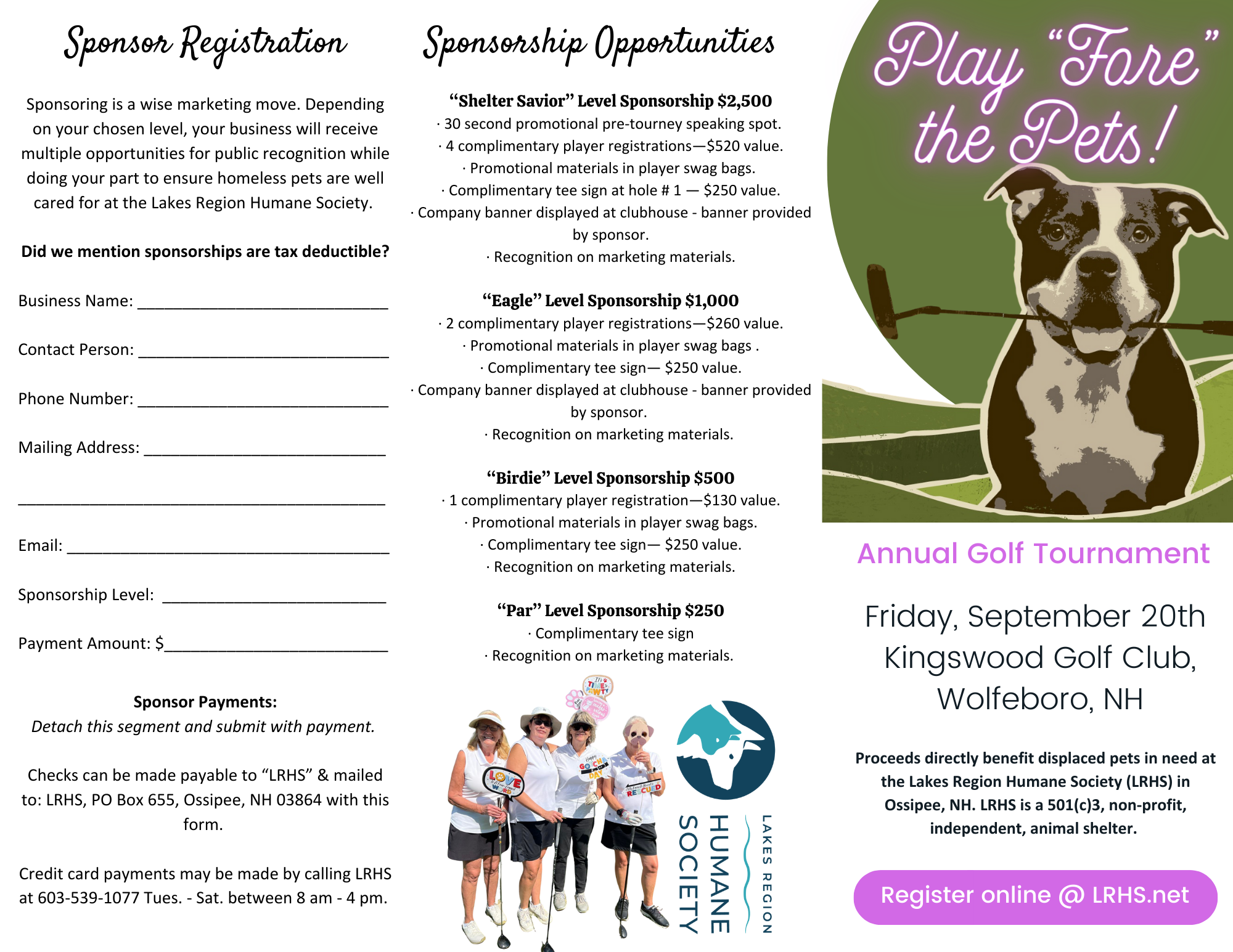 Call or email Megan Williams to become a sponsor (603) 539-1077